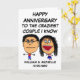 Este é um cartoon de excelente aniversário para qualquer casal doido divertido e amoroso a receber; basta adicionar os nomes de casais malucos e a data de aniversário deles nas caixas fornecidas e você está bem para ir. Procurando uma cor diferente de cabelo ou de olho? Em caso afirmativo, certifique-se de verificar nossa loja onde temos toneladas de combinações de casais de desenho disponível.