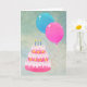 Cartão Feliz aniversário com bolo, presentes, balões e mú