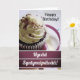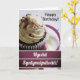 O cartão diz "hyvää syntymäpäivää!", o que significa "feliz aniversário" em finlandês.