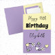 Cartão Feliz aniversário de 18 anos, púrpura amarelo
