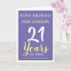 21 anos. Feliz aniversário para uma criança de vinte e um anos. Personalizar com nome e mensagem.