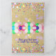 Design de cartão de saudação de aniversário dobrado personalizado com confete colorido e balões em um fundo de papel antigo. O texto é totalmente personalizável.