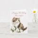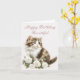 Enviem desejos de aniversário puros com o nosso 'Desejo de Aniversário Feliz de Gato e Flores'! Uma mistura encantadora de diversão felina e beleza floral para iluminar o dia especial de alguém.