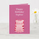 Cartão Feliz Aniversário de Gato Rosa