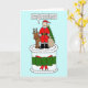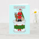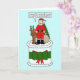Um desenho do Pai Natal e uma de suas renas em cima de um grande bolo branco. O Pai Natal diz "Feliz aniversário de Natal para uma neta especial".