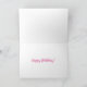 Cachorro giro e rabugento vestindo fita rosa cercada por bolas coloridas com texto "Feliz Aniversário!".