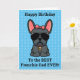 Cartão Feliz aniversário do cão azul Buldogue Francês