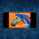 Cartão de Aniversário Feliz dos Cavalos de Abstrato Azul e Laranja dentro Saudação - "Desejando-lhe toda a alegria que o seu dia especial pode segurar! Que seu dia esteja cheio de todas as coisas que o fazem feliz. Aqui vai um ano maravilhoso à frente! Feliz aniversário!" | A saudação pode ser personalizada para ler como quiser.