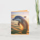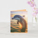 Este cartão de aniversário apresenta um golfinho feliz tocando no nascer do sol.