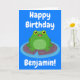 Cartão Feliz aniversário do sapo verde