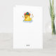 Matizes amarelos giros nadando em um lago na chuva vestindo um chapéu guarda-chuva colorido. Na frente do cartão acima da ilustração estão as palavras Feliz Aniversário em texto amarelo. Um coração de amor pálido é colocado de ambos os lados do desejo de aniversário num fundo azul. O mesmo patinho figura no dentro e na parte traseira do cartão. O dentro tem uma modelo para usar como está ou mudar para sua própria mensagem de aniversário.
