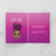 Esta design apresenta uma linda mulher de cabelos natural com pães altos e tons de ouro em um fundo rosa e magenta quente. Personalize sua mensagem.