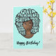 Esta design apresenta "Rainha, fenomenal, bela, inteligente, mágica, chefe, amorosa, sexy, independente, engraçada, criativa e forte" aninhada em seu afro, com colares em camadas em um fundo verde-claro. Personalize sua mensagem.
