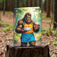 Cartão de aniversário engraçado para ele, com uma ilustração de um Pé Grande segurando um bolo de aniversário e cerveja. Adicione um humor engraçado a seu dia com este cartão de sasquatch de bobo! Você é lendário e espero que seu aniversário seja também!