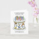 Uma ilustração de um bolo coberto de velas iluminadas que é decorado pelas laterais com ícones de bebês. As palavras "Parabéns a uma filha especial e a uma mãe a ser" acompanham a imagem.