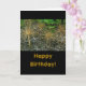 texto do cartão na frente: Parabéns. As vagens de flores em forma de esfera parecem quase como decorações de festas (faíscas?). Dentro texto: Esperamos que "o teu dia" seja tão especial como tu". O texto frontal e dentro é personalizável.