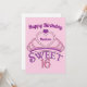 Cartão de aniversário bonito, doce, dezesseis feliz personalizado, com uma tiara rosa topeada com um coração roxo e o nome da sua adolescente dentro. Cute Sweet Six escreveu em lindos escritos para sua princesa que merece uma coroa real.
