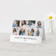 O moderno cartão de saudação de aniversário feliz apresenta 10 fotos. 8 na frente, 1 dentro e 1 na parte traseira da placa.