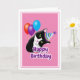 Lindo gato de smoking desejando um feliz aniversário. Características um gato preto e branco com um chapéu de aniversário e balões. Mensagem já incluída, ou você pode escrever a sua própria. Contorno branco no gato para fundos escuros. Eu usei a opção de formas da Zazzle em roxo, mas você pode ajustar isso. Ótimo para crianças e adultos. Perfeito para festas de aniversário.