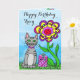 Feliz Cartão de Feliz Aniversário de Gato Whimsical e Flores. Bonito cartão de aniversário colorido para irmã, mãe, avó, amiga, tia ou qualquer um!