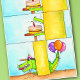 Este cartão vem em três vinhetas de desenho animado. O primeiro mostra um pilar amarelo sobre um fundo azul-céu. À esquerda do pilar, um bolo está sobre uma pequena mesa. O bolo é feito de esponja amarela, com recheio de chocolate e glacé rosa. Nela, uma vela de aniversário vermelha está acesa. Uma pequena mandíbula verde inferior estende-se por trás do pilar e em direção ao bolo. Na segunda vinheta, a mandíbula superior está deslizando para baixo em direção à mandíbula inferior. Vai bater no bolo. A terceira e última vinheta mostra a cena ligeiramente rebaixada. As mandíbulas pertenciam a um jacaré ou crocodilo que se escondia atrás do pilar. Está segurando o bolo na boca. Ele também está vestindo um chapéu de festa Amarelo e roxo e tem três balões amarrados à cauda; uma laranja, uma roxa e uma rosa. Está sorrindo alegremente.
