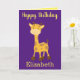 Um cartão de aniversário encantador para uma menina especial, este design apresenta um fundo roxo com fontes amarelas brilhantes. No centro está uma girafa fofa. Escolha o seu hoje! Clipart: design Prettygrafik (https://www.etsy.com/shop/Prettygrafikdesign)