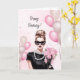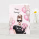 Celebre seu dia especial com elegância eterno! Este cartão de aniversário inspirado na água apresenta um design de moda com balões cor-de-rosa macio, sofisticados sotaques e um sofisticado modista segurando um buquê de rosas. Perfeito para a na moda que ama todas as coisas fabulosas! Envie os desejos de aniversário da menina glam para seus amigos, irmãs, mães ou qualquer um que mereça um aniversário cheio de beleza e graça.