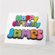 Texto colorido do estilo "Feliz Aniversário James".