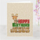 Dasher Deer comemora o aniversário do Cristo de Jesus. Bonita figura de desenho animado com o vermelho do Natal e o cachecol festivo verde em "Feliz Aniversário Jesus". Esta imagem de desenho animado envia uma mensagem de alegria de Natal. . As cores do Natal vermelho, verde e bronzeado... . A "Design" é um apelo aos homens, às mulheres e às crianças, a todas as idades, aos crentes de Jesus Cristo e à religião cristã. Estocar os "Stuffers" para os apoiadores da época de natal serem sobre Jesus Cristo. (DESIGN por Paula Bragg)