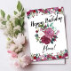 Feliz Aniversário Mãe! na frente com bordas vermelhas, cor-de-rosa e rosa de cor-de-água branca e centro de buquê floral. Personalize para "mãe" de sua maneira especial e personalize o texto do dentro com uma mensagem pessoal.