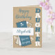 Feliz aniversário, filha incrível. Adicione seu nome e uma mensagem. Projetado em azul e branco, com um fundo gráfico *Kraft. *Cartão Kraft real não usado
