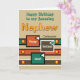 Personalize este cartão de cumprimentos de aniversário, para seu Sobrinho Incrível, com seu nome. O melhor sobrinho do mundo pertence a mim. Projetado em castanho, verde, laranja e branco.
