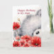 Um urso cinza bonito segurando um monte de flores vermelhas para oferecer, Feliz Aniversário, minha tia!