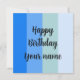Legal padrão de listras azuis com texto: Feliz aniversário e um nome modelo. Ajustado estilo marítimo.