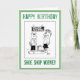 Um cartão de aniversário com um desenho de um palhaço e calçado. Cartão ideal para um trabalhador de Compro de Calçados