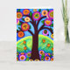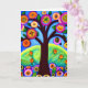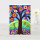 Cartão de Aniversário da Irmã. Trabalho de arte branco colorido. Árvore em flores e folhas amarelas, brancas, azuis e roxas. IA gerou conteúdo de arte