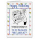 Cartoon Pub LandLady. Tema de comida de Pub. Personalize com a sua escolha de texto e mensagem dentro.