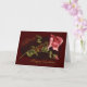Uma bela rosa rosa rosa num fundo vermelho profundo - um cartão de aniversário maravilhoso, na moda e elegante. Personalize com seu próprio texto para torná-lo verdadeiramente exclusivo.