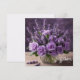 Cartão Feliz Aniversário Rosas Roxas e Flores Lavandas