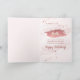 Cartão de aniversário com listras de ouro rosa metálico para destacar o nome e os pontos de ouro rosa