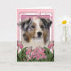 Cartão Feliz aniversario - tulipas cor-de-rosa - pastor
