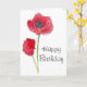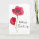 Cartão Feliz Aniversário Vermelho Papoila Flor Arte Botân