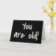 Envie este cartão de aniversário para se divertir com alguém no seu aniversário. Este cartão de aniversário fácil de personalizar é humorístico, atrevido e sarcástico com as palavras "Você é Velho". As palavras dentro dizem "Mas você ainda é muito divertido. Feliz Aniversário". Você pode facilmente mudar isso para suas próprias palavras ou personalizar com um nome. Isso vai trazer diversão e risos como uma brincadeira ou uma mordaça. As palavras estão em texto branco a preto. Totalmente personalizável para se divertir com esta arte vocal.
