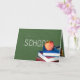 Apple e uma calculadora em livros escolares com formação em painéis verdes para um estudante que inicia outro ano de escola. O texto pode ser alterado.