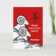 Feliz Ano Novo Chinês do Carneiro para os pais. Cartão de saudação de papel com uma ilustração de um par de carneiros, olhos fechados e flutuando pacificamente nas nuvens. Um símbolo do zodíaco caligráfico para carneiro também é visível. Arte, imagem e verso copyright © Shoaff Ballanger Studios, 2023.