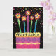 Diga feliz aniversário com este bolo de argila amarelo, rosa e roxo e velas brilhantes e brilhantes de cor clara. Enfatize a parte feliz porque é para isso que servem os aniversários. ©Mindy Pierce