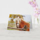 Uma bela foto de um cavalo parado perto de um portão é mostrada neste cartão de cumprimentos de aniversário. A frente do cartão tem a mensagem, "Mais uma vez é hora de...", enquanto a mensagem dentro diz, "Vire-se e aproveite o seu dia. Feliz aniversário"!
