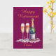 Cartão de Parabéns de Reforma Feliz da na moda. Este cartão de boas-vindas apresenta uma garrafa de espumante / gaseificante / vinho espumante com 2 óculos de flauta. Um cartão na moda adorável para escrever uma mensagem de adeus a uma família ou amigo ou colega que se está a reformar. Pode ser personalizado alterando os títulos e personalizando, alterando o nome e a mensagem de felicitação de dentro que atualmente lê "Desejo-lhe o melhor neste novo e empolgante capítulo! Sentir-te-á verdadeiramente saudades. Aproveite cada momento da sua merecida aposentadoria!"