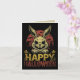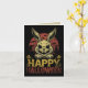Apresentando um cartão de saudação de Dia das Bruxas assustador com um coelho malicioso com um sorriso devilado. Perfeito por enviar desejos de época sombria para amigos e familiares, este cartão certamente adiciona um toque de diversão e medo aos seus dias. A design inspirada na safra, completa com lua de cheio e gotejando sangue, cria uma atmosfera assustadora, mas encantadora. Este cartão é obrigatório para qualquer amante do Halloween!