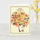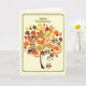 Cartão feliz da acção de graças com uma árvore, as corujas, as abóboras e as folhas.